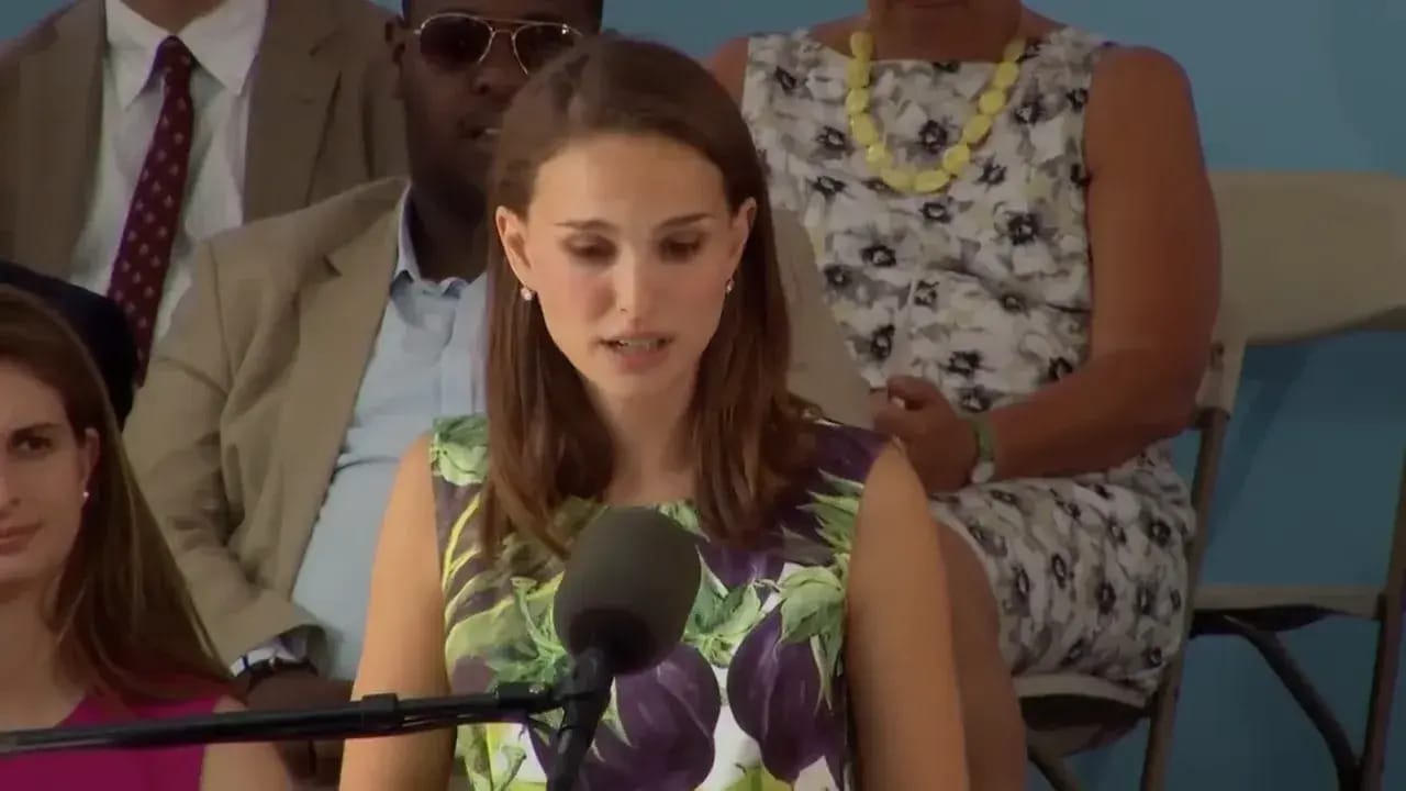 นาตาลีเริ่มต้นด้วยการเปิดใจถึงความไม่มั่นใจที่เธอมีแม้ในวันที่ได้รับเชิญให้พูดในงานนี้ เธอเล่าว่าตอนเธอเข้ามาเรียนที่ฮาร์วาร์ดในปี 1999 เธอรู้สึกเหมือนไม่ควรอยู่ตรงนั้น เพราะเธอถูกมองว่าเป็นแค่นักแสดงที่ไม่มีความจริงจังทางวิชาการ และเธอก็ไม่มั่นใจว่าตัวเองจะสามารถทำตามมาตรฐานของเพื่อนๆ ที่มาจากโรงเรียนชั้นนำได้